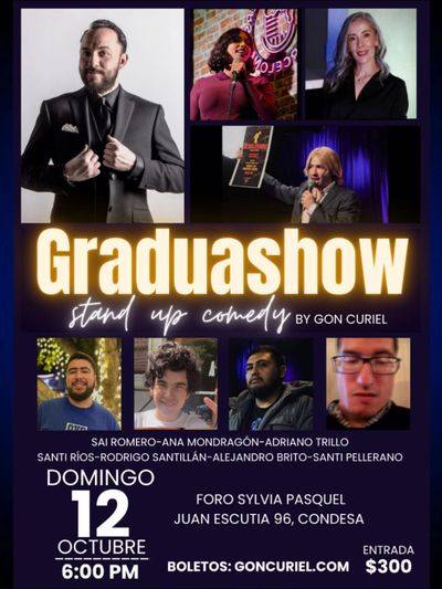 Sinopsis de la obra: ¡Gon Curiel lo hace de nuevo! Vengan a ver a esta nueva generación de su curso de Stand Up Comedy, presentados por él mismo, con invitados especiales que la están rompiendo en la escena. ¡La de risas que vamos a echar!